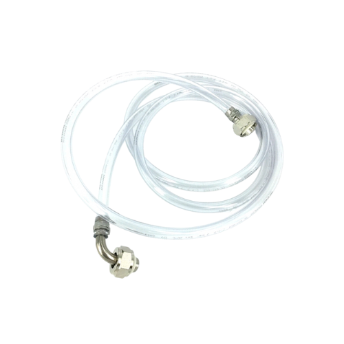 Volledig gemonteerde bierslangen sets met rechte en gebogen aansluiting, inclusief rubberringen en moeren.