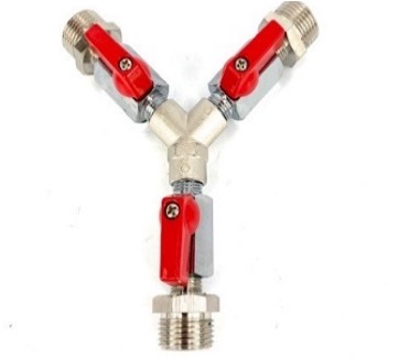 Dit Y-stuk is geschikt voor toepassingen waarbij meerdere leidingen met een grotere diameter worden verdeeld. Dankzij de geïntegreerde afsluitkranen kan elke leiding afzonderlijk worden geregeld of afgesloten. De robuuste messing constructie maakt dit onderdeel geschikt voor intensief professioneel gebruik.