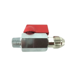 Compacte mini-kogelkraan van vernikkeld messing, geschikt voor CO₂- en luchtinstallaties tot 10 bar.