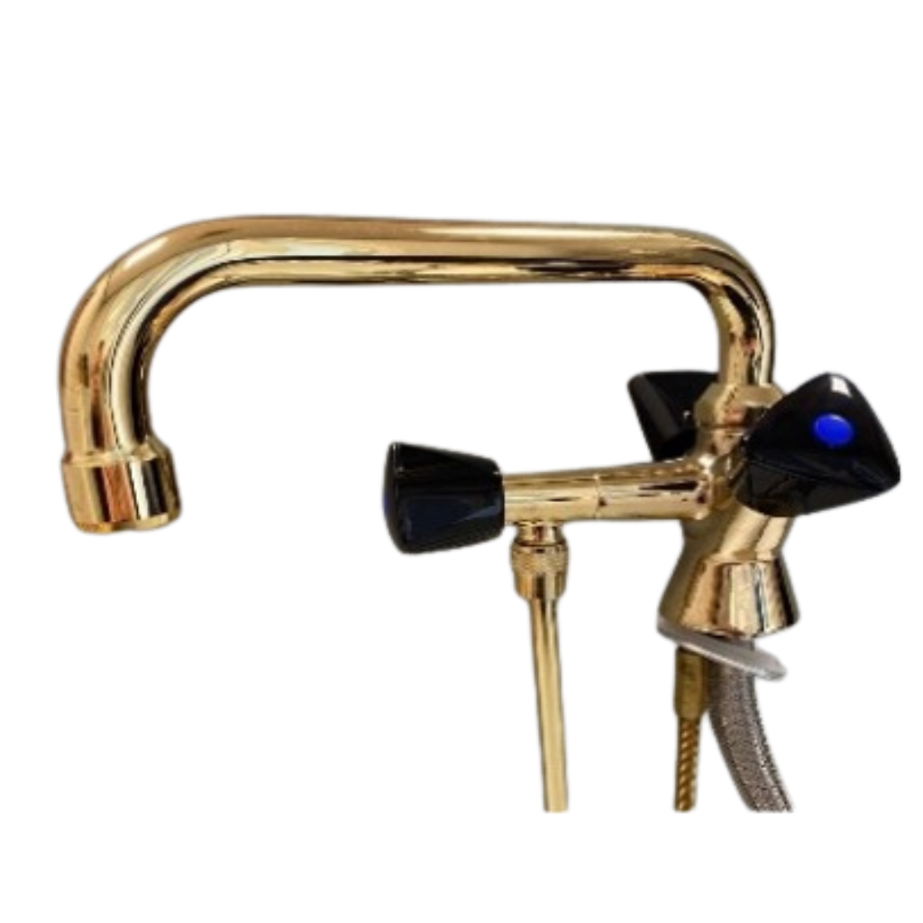 Luxe hoogglans gouden mengkraan met zwenkarm. Perfect voor premium bars en designinterieurs.