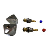Compacte revisieset voor warm/koud onderspoelkranen, uitgevoerd met verchroomde en zwarte knoppen.
