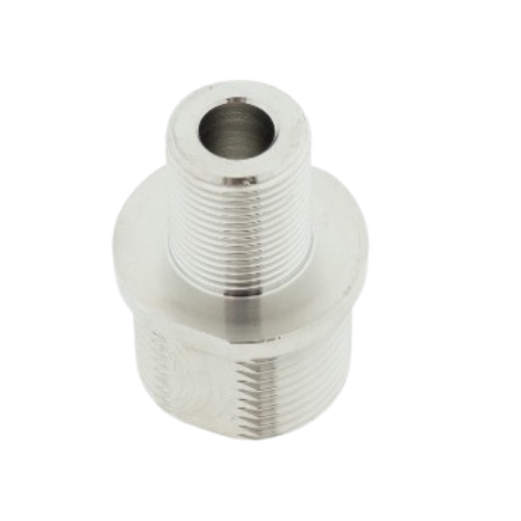 RVS 304 adapter van 3/8″ buitendraad naar 3/4″ buitendraad. Voorzien van doorstroom van 8,5 mm.
