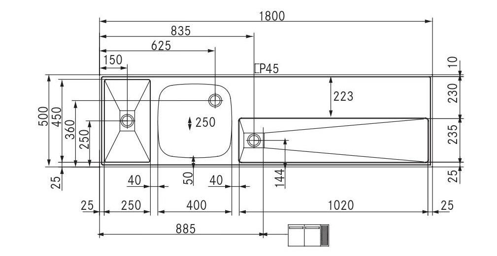 Met een lengte van 1800 mm biedt dit tapblad maximale werkruimte voor tapinstallaties, glaswerk en spoelen.